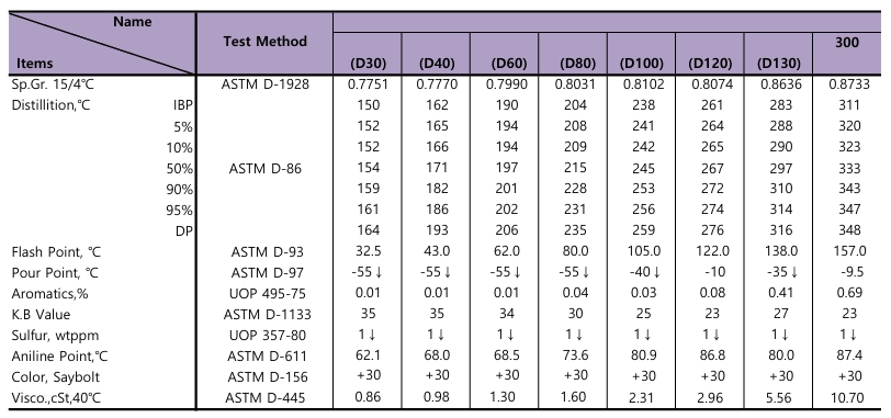 - D-Solvents contain rich naphthenic contents so they have better solubility than normal paraffin.